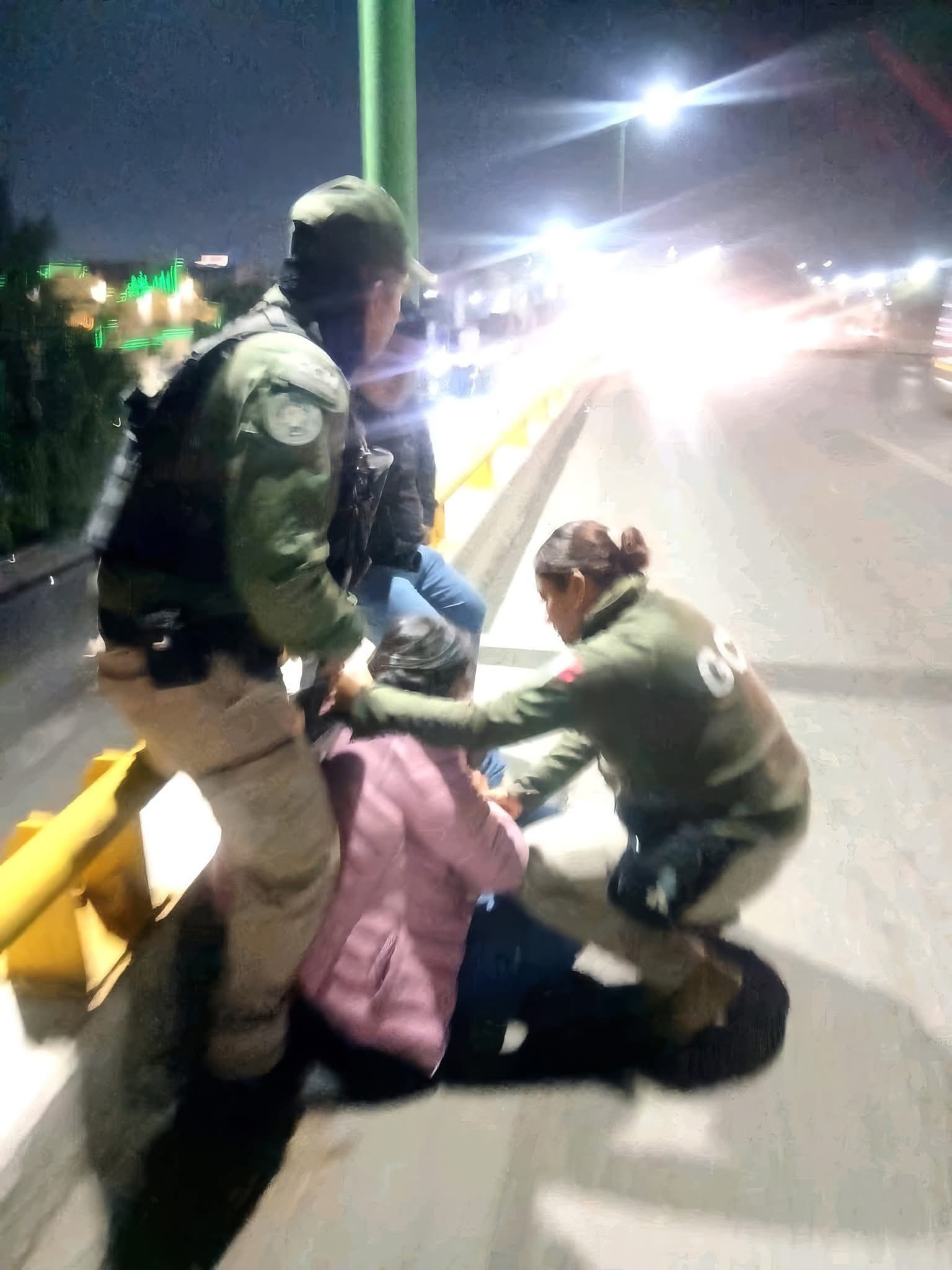 Elementos de la Guardia Civil Municipal de Soledad lograron rescatar a una mujer que intentaba arrojarse del puente ubicado en carretera a Matehuala y puente Valentín Amador.
