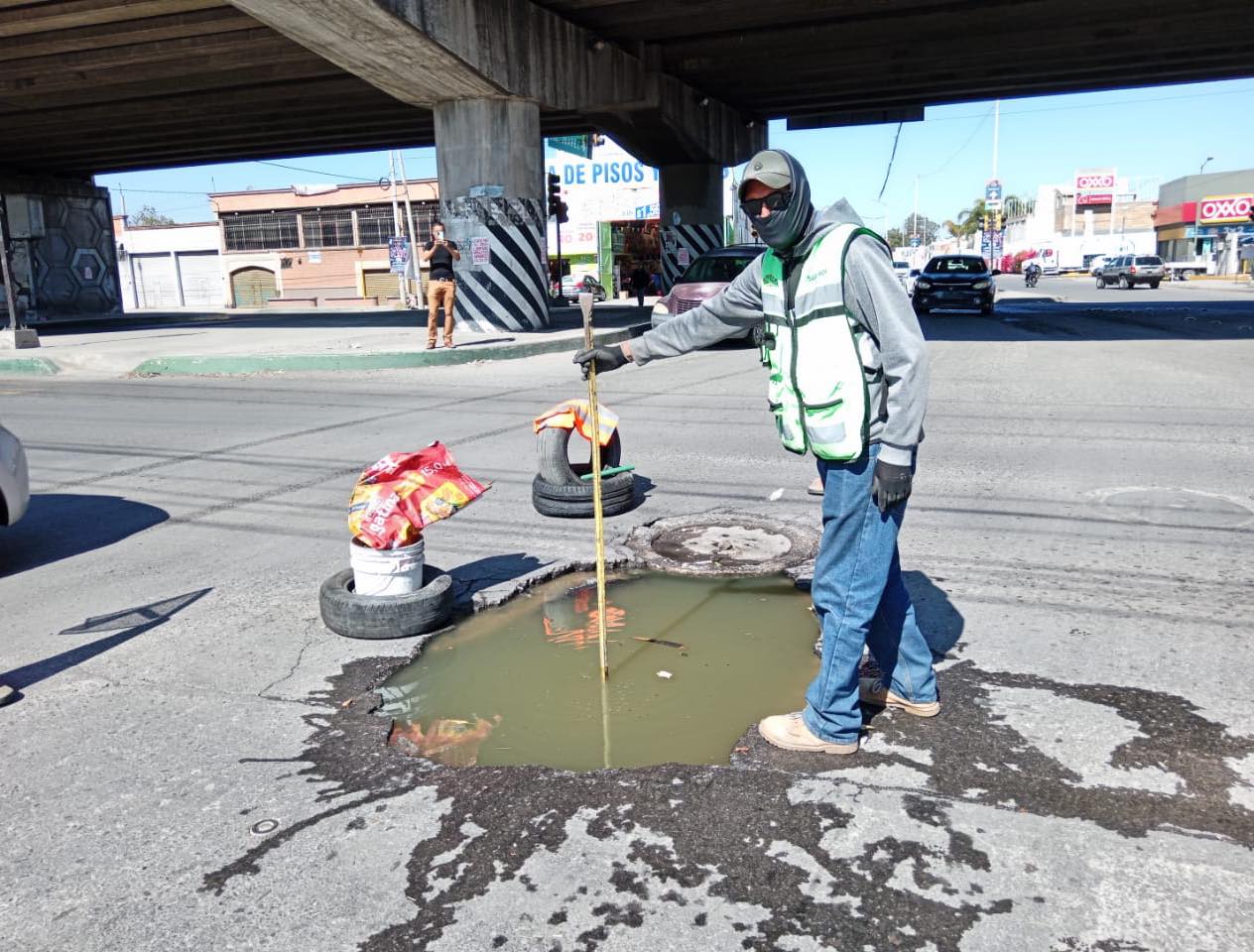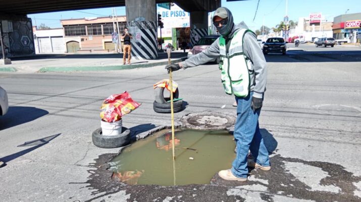 Por instrucción del alcalde Juan Manuel Navarro, personal de Infraestructura Municipal ya trabaja en la zona para restablecer la vialidad lo antes posible, con acciones que incluyen la evaluación del desperfecto, reemplazo de tubería y reposición del pavimento, garantizando seguridad y continuidad en la actividad vial y comercial.