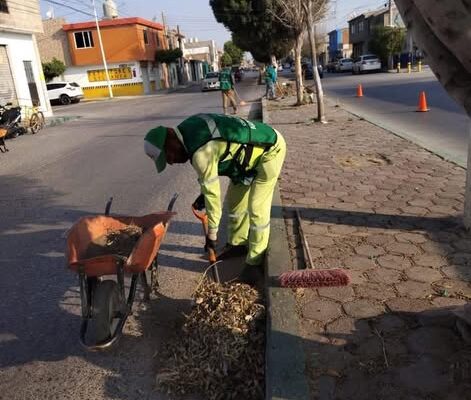 El Ayuntamiento de Soledad de Graciano Sánchez, a través de la Dirección de Servicios Municipales y su Área de Imagen Urbana, realiza trabajos de limpieza, barrido manual, deshierbe y recolección de basura, hojas y desechos en la Avenida Rivas Guillén, en el tramo que va de calle Lázaro Cano hasta Carretera a Rioverde.