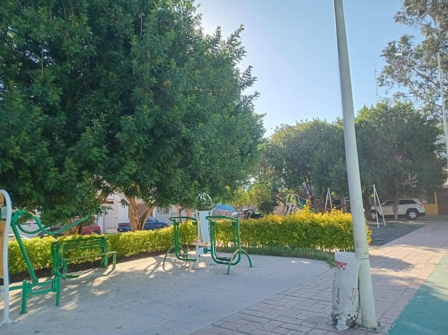La Dirección de Servicios Municipales, a través del departamento de Parques y Jardines, continúa atendiendo los reportes de la población con trabajos de poda de árboles, deshierbe, arañado y barrido en el área verde de la Privada San Pedro.