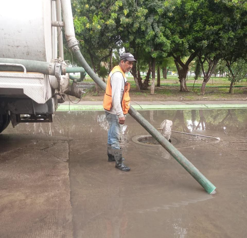 En coordinación con Seguridad Vial e Infraestructura, se realizan acciones de desazolve, apoyo a peatones y extracción de agua con maquinaria especializada.