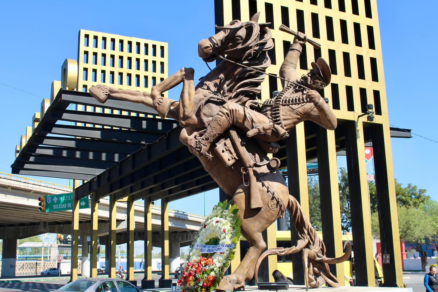 Con la colocación de una ofrenda en el monumento ubicado en la entrada monumental del municipio, se rindió homenaje a la memoria de Graciano Sánchez Romo. 🕊️