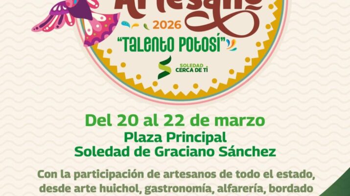 Del 20 al 22 de marzo, la Plaza Principal de Soledad de Graciano Sánchez reunirá a artesanas y artesanos de todo el estado para celebrar la tradición, la identidad y el talento potosino.